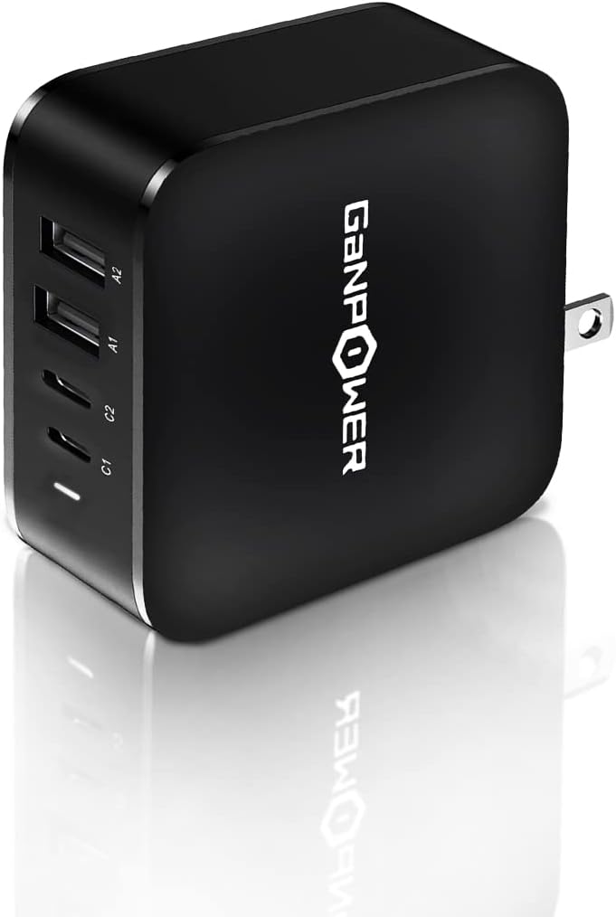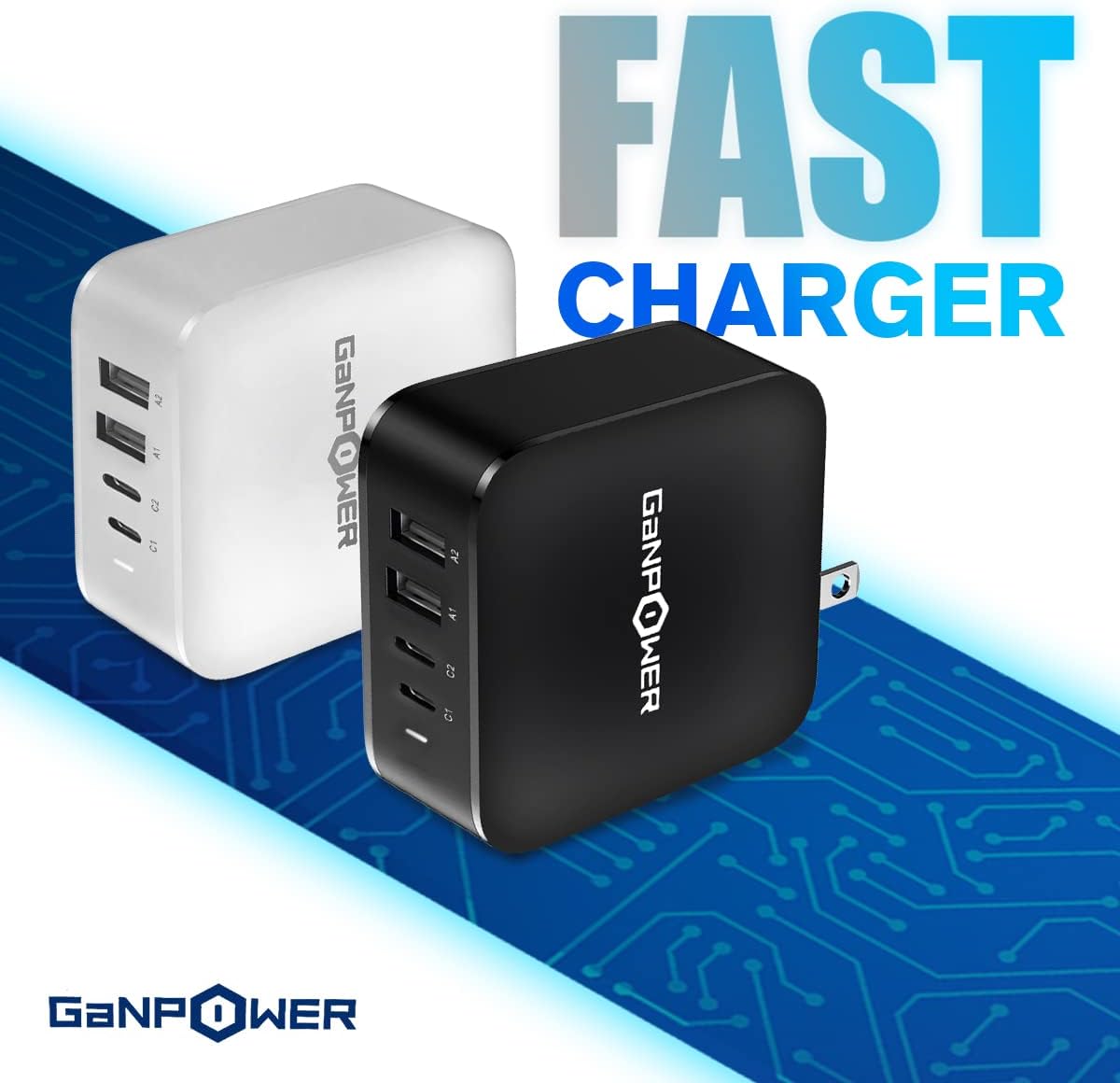 - GaNPower PD充電器は、合計120Wの出力を供給できます。この電力レベルにより2つのUSB-Aタイプ ポートと2つのUSB-Cタイプポートを含む最大4つのデバイスを同時に急速充電できます。